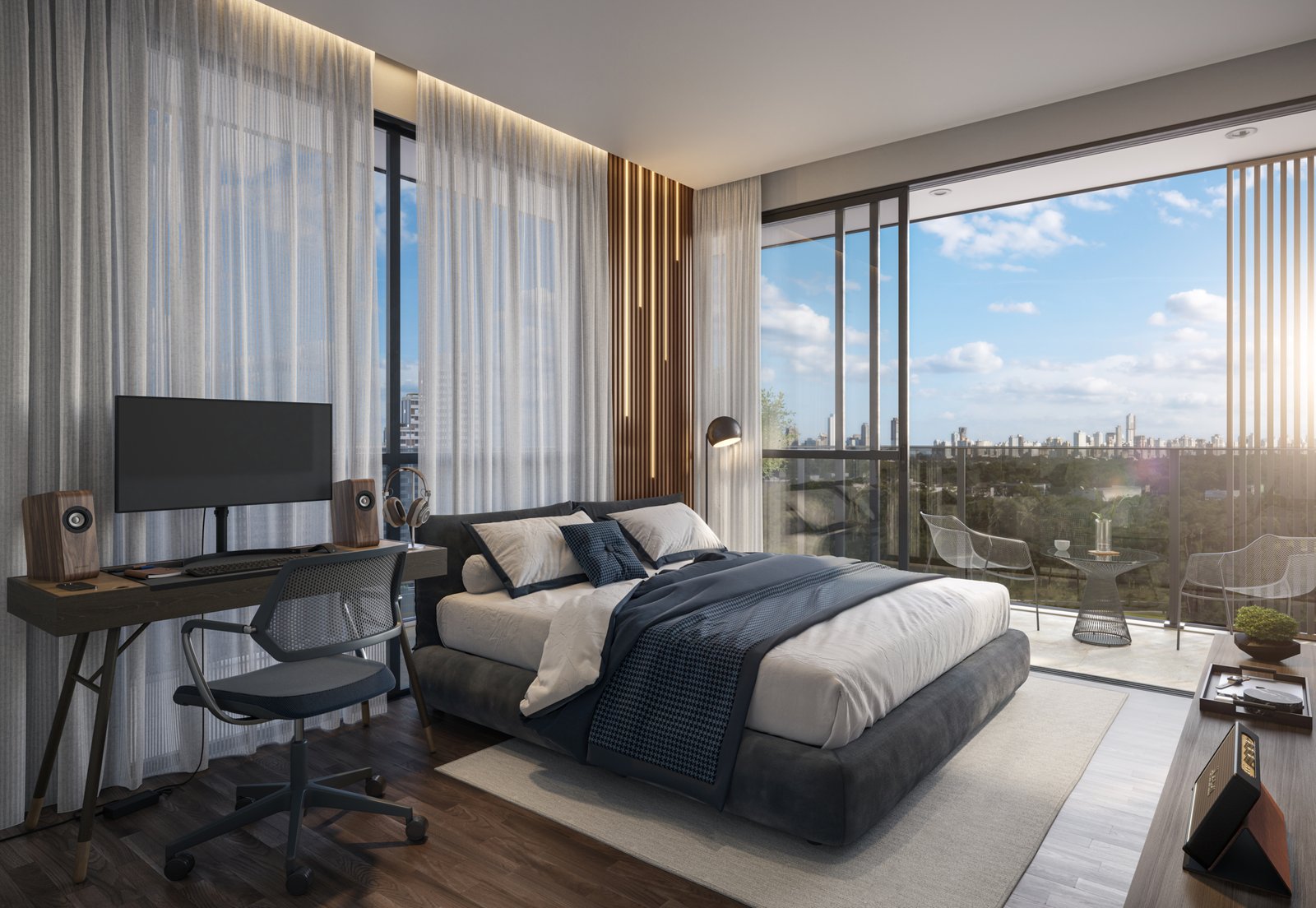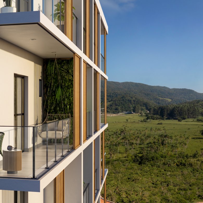 A fachada contemporânea reflete a essência do empreendimento: ser único, urbano e feito para quem vive em constante movimento, buscando o novo e o melhor todos os dias. O grande diferencial do projeto está no seu espaço vazado no centro da estrutura — uma marca visual ousada que simboliza a centralidade do ser humano e convida à conexão com o ambiente.